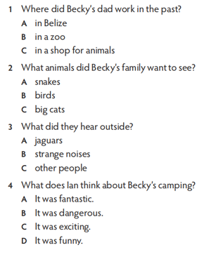 Becky: Vâng, chúng tôi có thấy. Rất nhiều. Chúng tôi muốn nhìn thấy những con hổ, nhưng không có bất kỳ con hổ nào ở Belize. Nhưng họ đã có báo đốm ở đó! Chúng tôi nghe thấy chúng bên ngoài vào ban đêm.