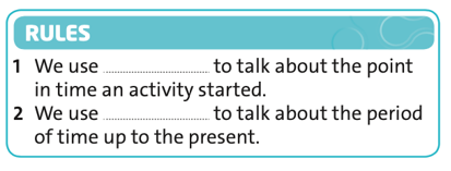 5 (trang 21 SGK Tiếng Anh 8 Friends plus): Study the examples and complete the rules with for and since. (Nghiên cứu các ví dụ và hoàn thành các quy tắc với for và since)