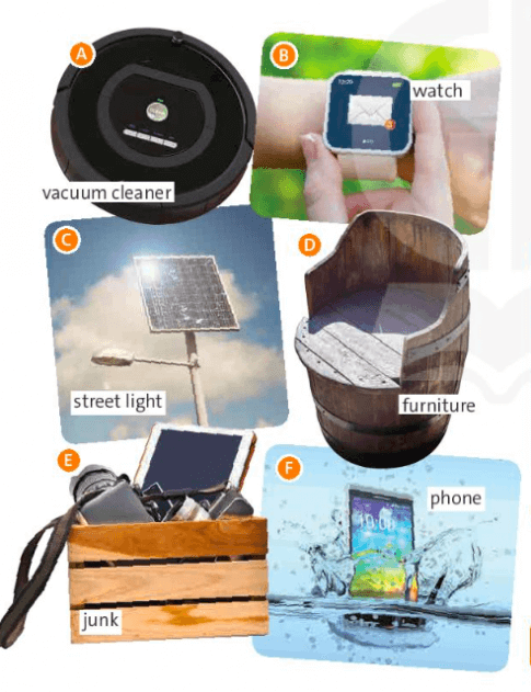 - natural (a): tự nhiên - recycled (a):tái chế - second-hand (a): đã qua sử dụng - smart (a): thông minh - solar (a): thuộc mặt trời - useful (a): hữu ích - waterproof (a): chống thấm nước |