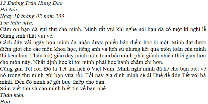 Write (trang 50-51 SGK Tiếng Anh 8) 1. Look at Hoa's letter to Tim. She wrote it at the end ...