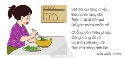 Câu 1 SGK Tiếng Việt lớp 2 Tập 1 trang 121: Bạn nhỏ trong bài thơ làm việc gì?