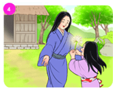 Cầm bông hoa trong tay, cô bé vui mừng chạy về nhà. Phát hiện ra mẹ đang đứng tươi cười khỏe mạnh chờ cô ở đầu ngõ. Từ đó, hai mẹ con lại sống vui vẻ và hạnh phúc bên nhau. Cũng từ đó, người ta gọi bông hoa đó là bông hoa cúc trắng, một biểu tượng của lòng hiếu thảo.