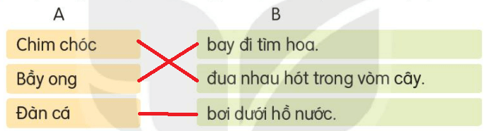 Câu 3 trang 15 sgk Tiếng Việt lớp 3: Ghép từ ngữ ở cột A với từ ngữ ở cột B để tạo câu. Chép lại các câu đó.