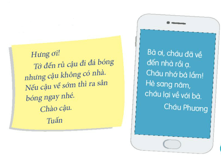 Câu 1 trang 15 sgk Tiếng Việt lớp 3: So sánh để tìm những điểm khác nhau giữa hai tin nhắn dưới đây: