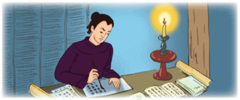 Sáng sáng, ông cầm que vạch lên cột nhà luyện chữ cho cứng cáp. Mỗi buổi tối, ông viết xong mười trang vở mới chịu đi ngủ. Chữ viết đã tiến bộ, ông lại mượn những cuốn sách chữ viết đẹp làm mẫu để luyện nhiều kiểu chữ khác nhau.