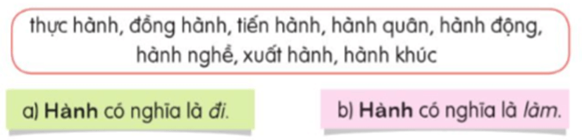 a) Hành có nghĩa là đi: Đồng hành, hành quân, xuất hành, hành khúc