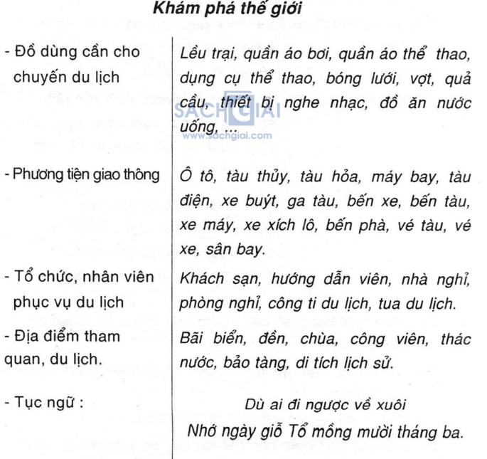 Câu 2 (trang 163 sgk Tiếng Việt lớp 4 Tập 2) : Lập bảng thống kê các từ ngữ đã học ở những tiết Mở rộng vốn từ trong chủ điểm Khám phá thế giới hoặc Tình yêu cuộc sống