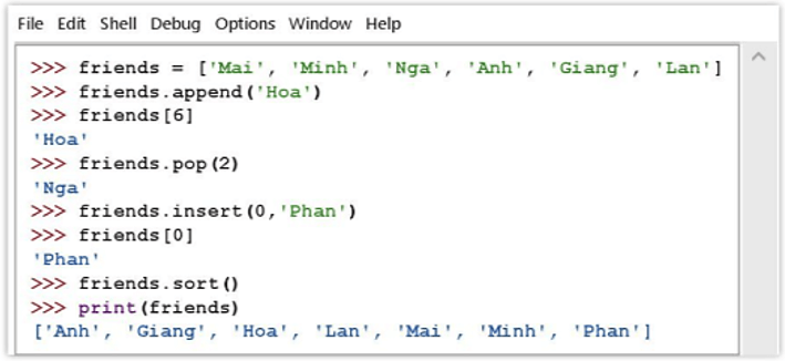 Ví dụ: Minh họa chương trình Python sử dụng một số hàm xử lí danh sách.