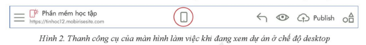Các phần mềm tạo website, bao gồm Mobirise, cung cấp chức năng xem trước trang web với nhiều chế độ khác nhau. Mobirise có chế độ xem trước trên điện thoại (Mobile View) để giả lập kết quả hiển thị trên thiết bị di động. Để chuyển từ chế độ xem desktop sang mobile, chọn Mobile View trên thanh công cụ khi trang web đang được chỉnh sửa.( hình 2)