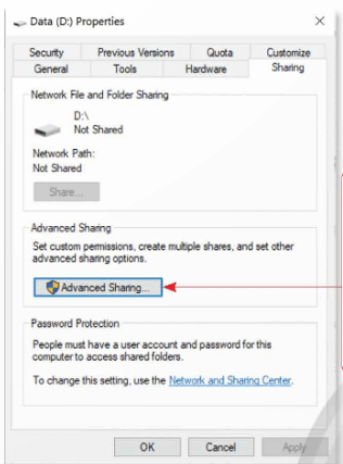 Bước 2. Nháy chọn thẻ Sharing, sau đó chọn Advanced Sharing. Cửa sổ Advanced Sharing hiện lên như hình 2: