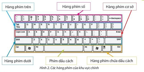 Khu vực chính của bàn phím gồm 5 hàng phím: