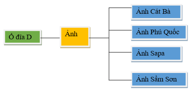 Giải Tin học lớp 3 trang 41 Vận dụng 2: Gia đình em có nhiều tệp ảnh khi đi du lịch. Em hãy vẽ sơ đồ hình cây biểu diễn tên các thư mục để sắp xếp ảnh hợp lí.