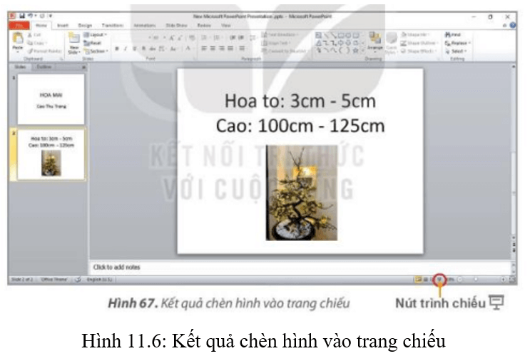 Bước 4: Điều chỉnh kích thước và vị trí của hình trên trang chiếu.