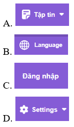 Câu 9. Biểu tượng nào sau đây là chức năng chuyển đổi ngôn ngữ hiển thị trên Scratch?