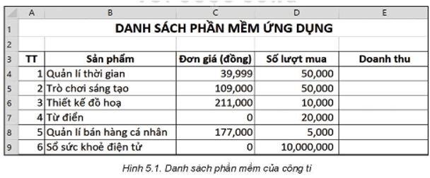 Theo em, bảng tính bạn Khoa tạo ra ở Hình 5.1 có cần tính Doanh thu mỗi phần mềm.