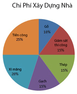 Bài 3. Hoa vẽ biểu đồ biểu thị tỉ lệ chi phí xây dựng nhà ở của gia đình theo bảng thống kê dưới đây: