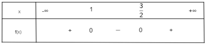 Dựa vào bảng xét dấu ta thấy f(x) âm khi x thuộc khoảng và f(x) dương khi x thuộc khoảng (-∞; 1) và .