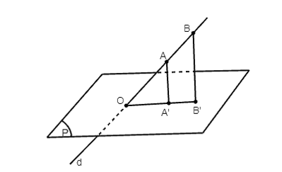 Luyện tập 4 trang 84 Toán 11 Tập 2: Cho đường thẳng d và mặt phẳng (P) cắt nhau tại điểm O. Lấy các điểm A, B thuộc d và khác O; các điểm A’, B’ thuộc (P) thỏa mãn AA’ ⊥ (P), BB’ ⊥ (P). Chứng minh rằng