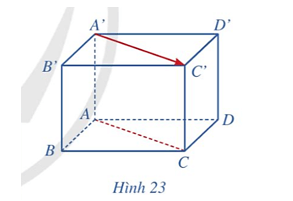 Hoạt động 1 trang 65 Toán 12 Tập 2: Cho hình hộp ABCD.A'B'C'D' (Hình 23). Giá của vectơ và đường thẳng AC có vị trí tương đối như thế nào?