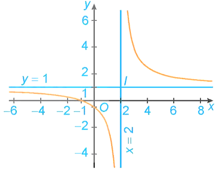 Đồ thị hàm số nhận giao điểm I(2; 1) của hai đường tiệm cận làm tâm đối xứng và nhận hai đường phân giác của các góc tạo bởi hai đường tiệm cận này làm trục đối xứng.