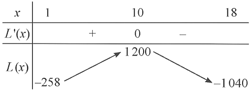 - Trên khoảng (10; 18), L'(x) < 0 nên hàm số nghịch biến trên khoảng này.