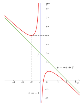 Tâm đối xứng của đồ thị hàm số là điểm I(– 1; 1).