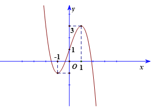 +) Hàm số đạt cực tiểu tại x = −1, giá trị cực tiểu yCT = −1. Hàm số đạt cực đại tại x = 1, giá trị cực đại yCĐ = 3.