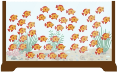 Em đếm số con cá theo hàng (1 chục, 2 chục, 3 chục, 4 chục).