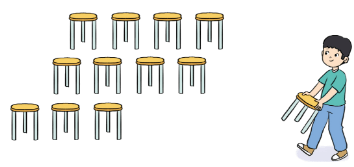 Có 12 chiếc ghế, xếp mỗi hàng 4 chiếc ghế. Số ghế đó đủ xếp thành hàng ghế.