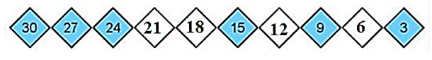 b) Các số trong dãy là kết quả của bảng nhân 3 nhưng viết theo thứ tự từ lớn đến bé. Số liền sau kém số liền trước 3 đơn vị.