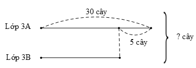 Ví dụ: Lớp 3A trồng được 30 cây xanh, lớp 3B trồng được ít hơn lớp 3B 5 cây. Hỏi cả hai lớp trồng được bao nhiêu cây xanh?
