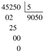 + 45 chia 5 được 9, viết 9 9 nhân 5 bằng 45, 45 trừ 45 bằng 0 + Hạ 2, 2 chia 5 được 0, viết 0 0 nhân 5 bằng 0, 2 trừ 0 bằng 2 + Hạ 5, 25 chia 5 được 5 5 nhân 5 bằng 25, 25 trừ 25 bằng 0 + Hạ 0, 0 chia 5 được 0 0 nhân 5 bằng 0, 0 trừ 0 bằng 0 Vậy 45 250 : 5 = 9 050 |