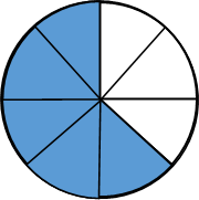 e) Chia một hình tròn thành 8 phần bằng nhau và tô màu 5 phần như thế thì phân số chỉ số phần không tô màu là |