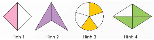 Mẫu số cho biết Hình 1 được chia thành 2 phần bằng nhau, tử số cho biết đã tô màu 1 phần.