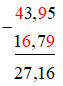Số bị trừ là 25,64, số trừ là 9,5. Vậy hiệu là: