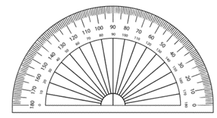 Thước đo góc có dạng nửa hình tròn và được chia đều thành 180 phần bằng nhau, mỗi phần ứng với 1°.