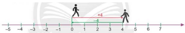 a) Trên trục số, một người bắt đầu từ điểm 0 di chuyển về bên phải (theo chiều dương) 4 đơn vị đến điểm +4. Sau đó, người đó đổi hướng di chuyển về bên trái 4 đơn vị. Hãy cho biết người đó dừng lại tại điểm nào và thử nêu kết quả của phép tính sau: (+4) + (-4) = ?