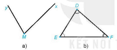 Bài 8.25 trang 60 Toán lớp 6 Tập 2: Viết tên (cách viết kí hiệu) của góc, chỉ ra đỉnh, cạnh của góc trong mỗi hình vẽ sau: