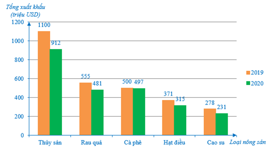 Bài 2. Biểu đồ sau đây cho biết tổng kim ngạch xuất khẩu nông sản 2 tháng đầu năm của Việt Nam giai đoạn 2019 – 2020: