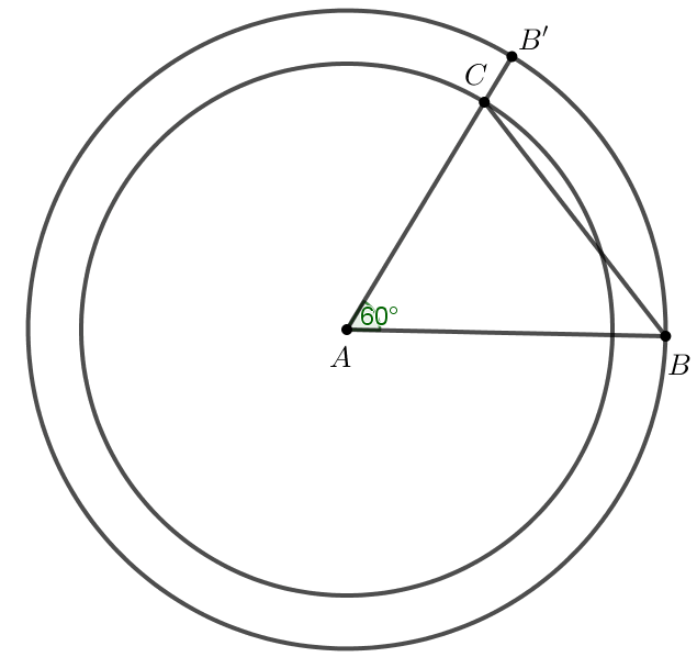 Ẩn các đường tròn và số đo góc, ta thu được tam giác như sau: