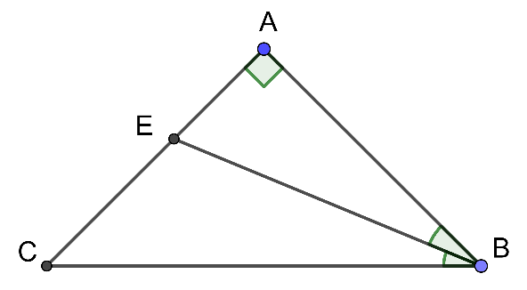 Câu 14. Cho vuông tại A. Tia phân giác của góc B cắt AC tại E. Hãy chọn đáp án đúng.