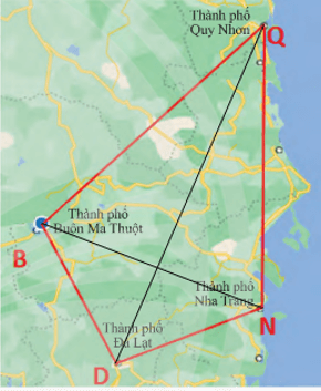 Bài 7 trang 67 Toán 8 Tập 1: Trên bản đồ, tứ giác BDNQ với các đỉnh là các thành phố Buôn Ma Thuột, Đà Lạt, Nha Trang, Quy Nhơn.