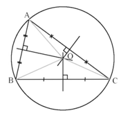 − Đường tròn ngoại tiếp tam giác có tâm là giao điểm của ba đường trung trực của tam giác và có bán kính bằng khoảng cách từ giao điểm đó đến một đỉnh bất kỳ của tam giác.