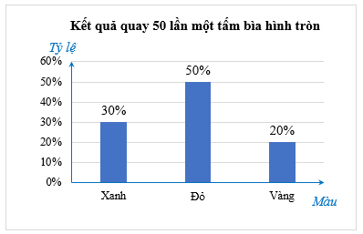 Bài 5. Quay 50 lần một tấm bìa hình tròn được chia thành ba hình quạt với các màu xanh, đỏ, vàng. Quan sát và ghi lại mũi tên chỉ vào hình quạt có màu nào khi tấm bìa dừng lại. Kết quả thu được như sau: