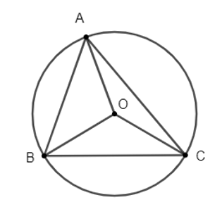 Ví dụ: Cho tam giác ABC có ba đỉnh nằm trên đường tròn (O). Xác định các góc ở tâm của đường tròn.