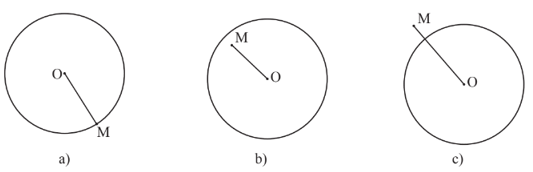 – Điểm M nằm trên đường tròn (O; R) nếu OM = R (Hình a);