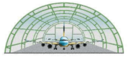 Bài 1. Một nhà vòm chứa máy bay có mặt cắt hình nửa elip cao 15 m và rộng 36 m (hình vẽ). Tính khoảng cách theo phương thẳng đứng từ một điểm cách chân tường 6 m lên đến nóc vòm nhà (kết quả làm tròn đến hàng phần trăm của m).