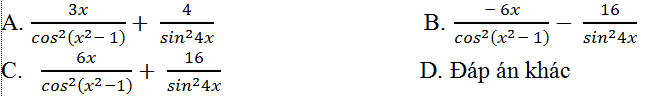 Câu 5: Tính đạo hàm của hàm số y= 3tan(x2 - 1) – 4cot 4x?