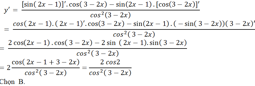 Câu 14: Tính đạo hàm của hàm số y= sin( 2x- 3).cos( 8- 4x)