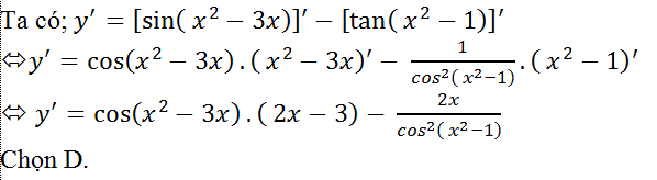 Ví dụ 7. Tính đạo hàm của hàm số: y= sin( x2- 3x) – tan(x2- 1)?